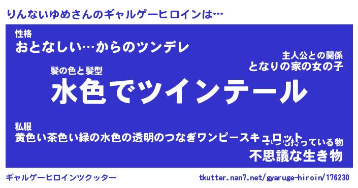 | 女子向けラノベタイトル風あだ名 | 『(仮)りんないゆめのやんごとなき事情』 |