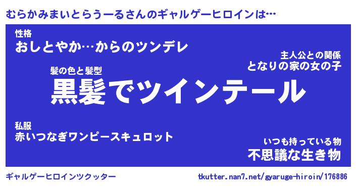 | 男性向けラノベタイトル風あだ名 | 『むらかみまいとらうーるの憂鬱』 |