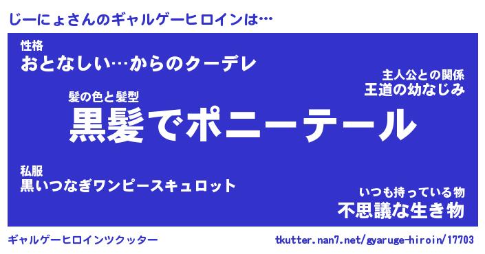 | 男性向けラノベタイトル風あだ名 | 『じーにょの憂鬱』 |