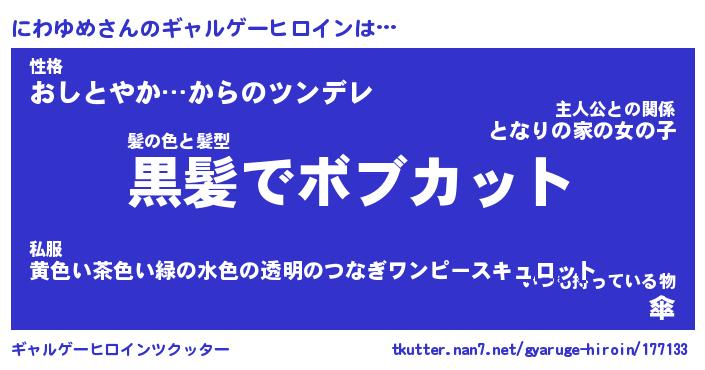 | ファンタジー風あだ名 | 『ニワフェル』『エターナルニワユメー』 |