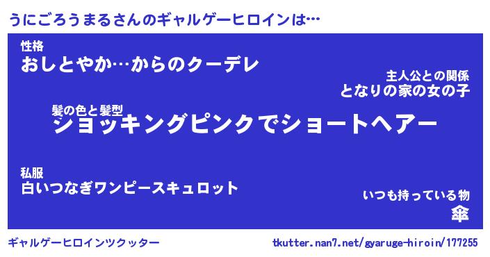 | 男性向けラノベタイトル風あだ名 | 『うにごろうまるの憂鬱』 |