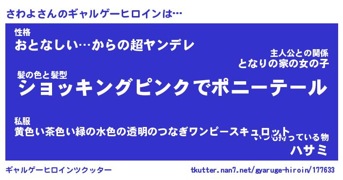 | 男性向けラノベタイトル風あだ名 | 『さわよの憂鬱』 |