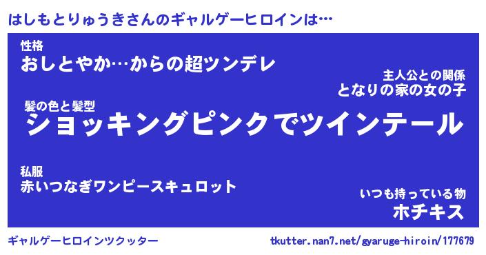 | 肩書あだ名 | 『はしもとりゅうき御曹司』 |