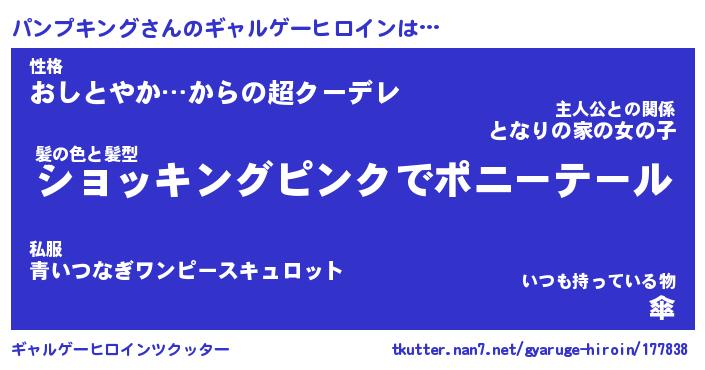 | 女子向けラノベタイトル風あだ名 | 『(仮)パンプキングのやんごとなき事情』 |