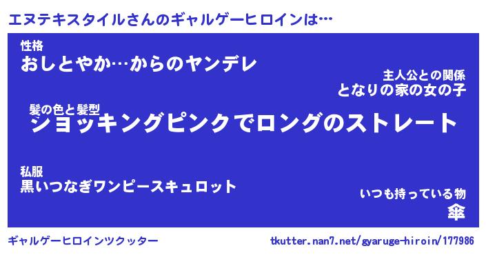 | 男性向けラノベタイトル風あだ名 | 『エヌテキスタイルの憂鬱』 |