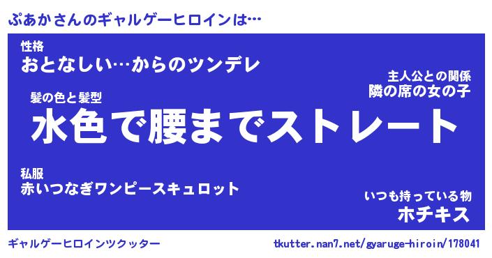 | 女子向けラノベタイトル風あだ名 | 『(仮)ぷあかのやんごとなき事情』 |