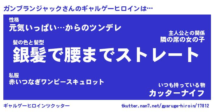 | 男性向けラノベタイトル風あだ名 | 『ガンブランジャックの憂鬱』 |