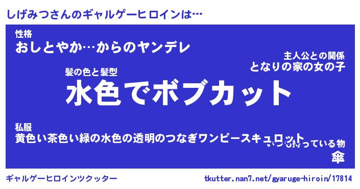 | 男性向けラノベタイトル風あだ名 | 『しげみつの憂鬱』 |