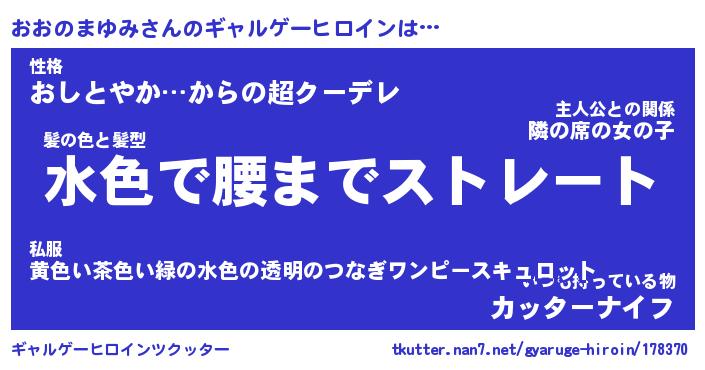 | 女子向けラノベタイトル風あだ名 | 『(仮)おおのまゆみのやんごとなき事情』 |