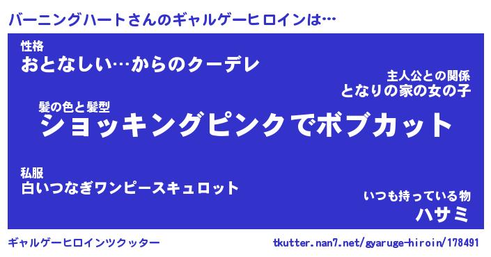 | 男性向けラノベタイトル風あだ名 | 『バーニングハートの憂鬱』 |