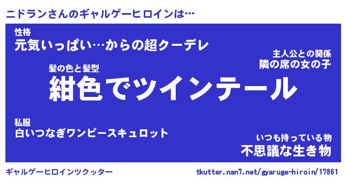 | 意味不明あだ名 | 『ペロリンニドラン』『永久保存ニドラン』 |