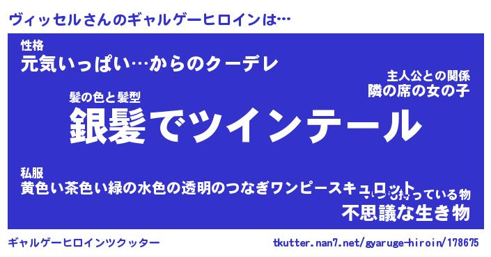 | ファンタジー風あだ名 | 『ヴィフェル』『エターナルヴィッセルー』 |