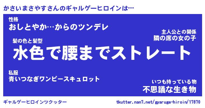 | 男性向けラノベタイトル風あだ名 | 『かさいまさやすの憂鬱』 |
