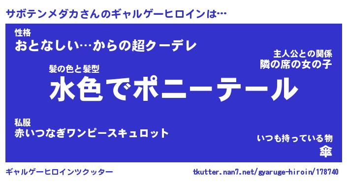 | 男性向けラノベタイトル風あだ名 | 『サボテンメダカの憂鬱』 |