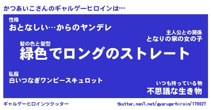 | 男性向けラノベタイトル風あだ名 | 『カツアイコアートオンライン』 |