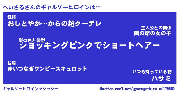 | 意味不明あだ名 | 『ペロリンへいさる』『永久保存へいさる』 |