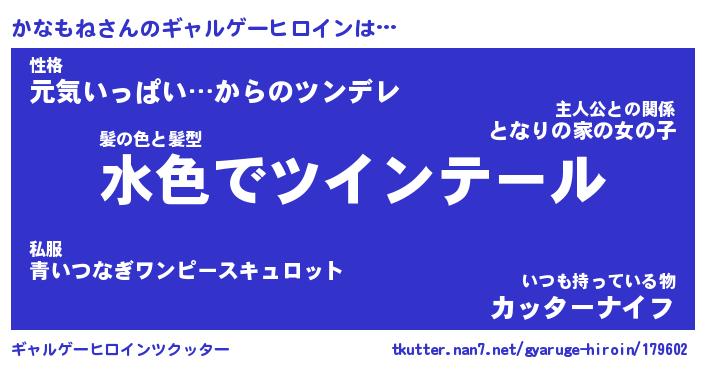 | 男性向けラノベタイトル風あだ名 | 『かなもねの憂鬱』 |