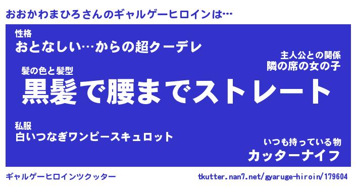 | 男性向けラノベタイトル風あだ名 | 『おおかわまひろの憂鬱』 |