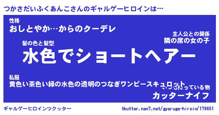 | 男性向けラノベタイトル風あだ名 | 『つかさだいふくあんこの憂鬱』 |