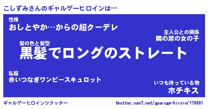 | 女子向けラノベタイトル風あだ名 | 『こしずみ姫と円卓の騎士』 |
