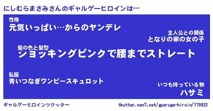| 肩書あだ名 | 『にしむらまさみ店長』 |