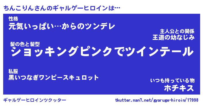 | ファンタジー風あだ名 | 『チンフェル』『エターナルチンコリンー』 |