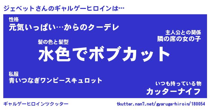 | 女子向けラノベタイトル風あだ名 | 『(仮)ジェベットのやんごとなき事情』 |