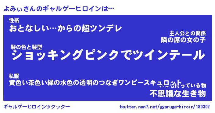 | 男性向けラノベタイトル風あだ名 | 『よみぃの憂鬱』 |
