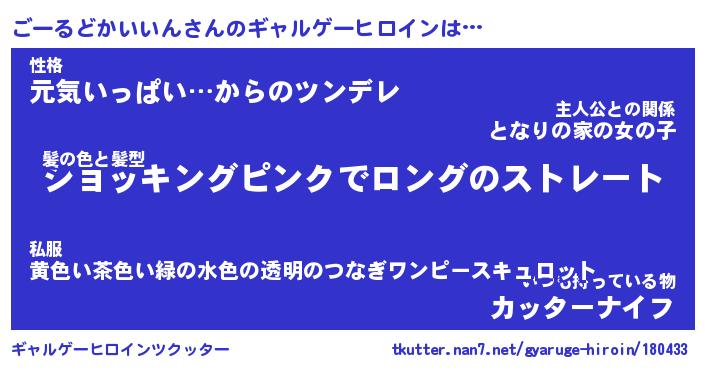 | 女子向けラノベタイトル風あだ名 | 『(仮)ごーるどかいいんのやんごとなき事情』 |