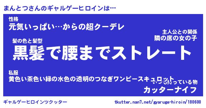 | 男性向けラノベタイトル風あだ名 | 『まんとつの憂鬱』 |
