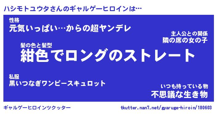 | ヘコむあだ名 | 『ハシにー』『豆乳』『ハシぷりん』 |