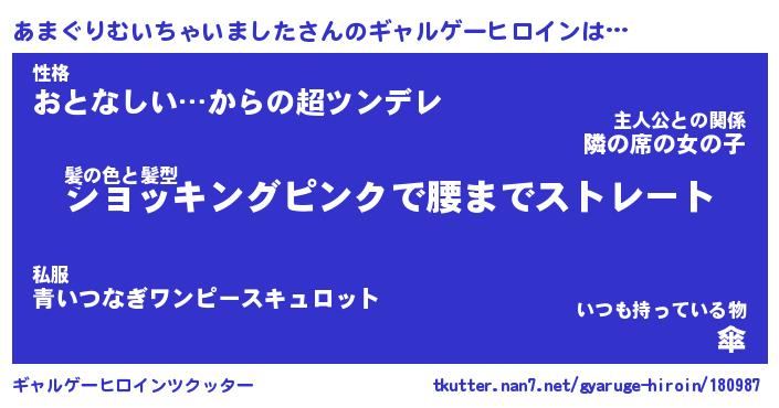 | 胡散臭い通販商品みたいなあだ名 | 『必ず成功するブレスレット…その名も「あまぐりむいちゃいました」』 |