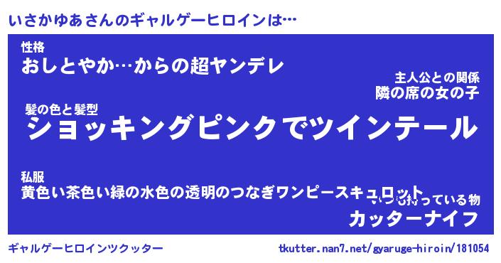 女子向けラノベタイトル風あだ名 | 『(仮)いさかゆあのやんごとなき事情』 |