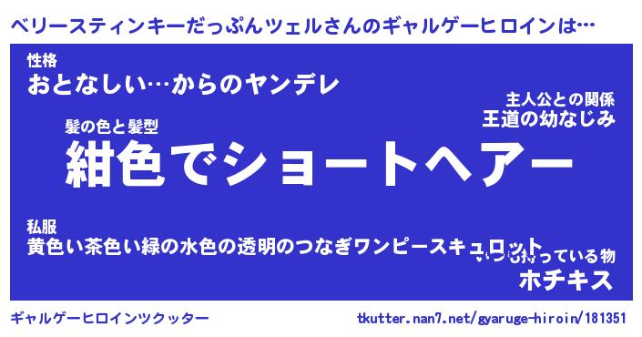 | 女子向けラノベタイトル風あだ名 | 『誰かこのベリースティンキーだっぷんツェルを説明してください! ~契約から始まるウェディング~』 |