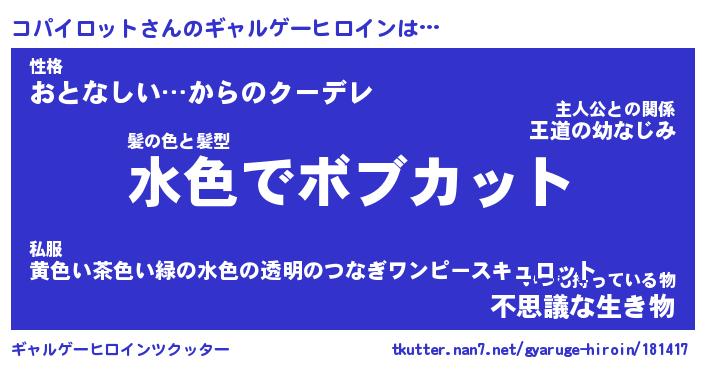 | 男性向けラノベタイトル風あだ名 | 『コパイロットの憂鬱』 |