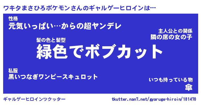 | 女子向けラノベタイトル風あだ名 | 『ワキタまさひろポケモン姫と円卓の騎士』 |