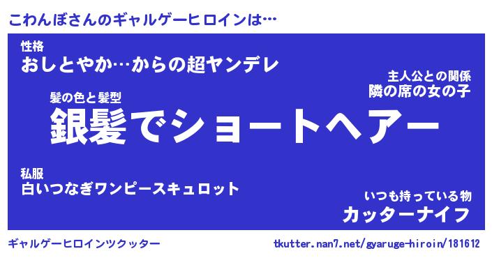 | 女子向けラノベタイトル風あだ名 | 『こわんぼ姫と円卓の騎士』 |