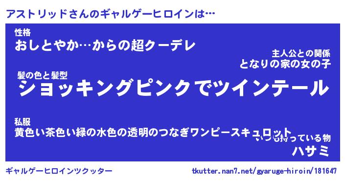 | 男性向けラノベタイトル風あだ名 | 『アストリッドの憂鬱』 |