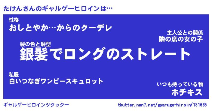 | ファンタジー風あだ名 | 『タケフェル』『エターナルタケンー』 |
