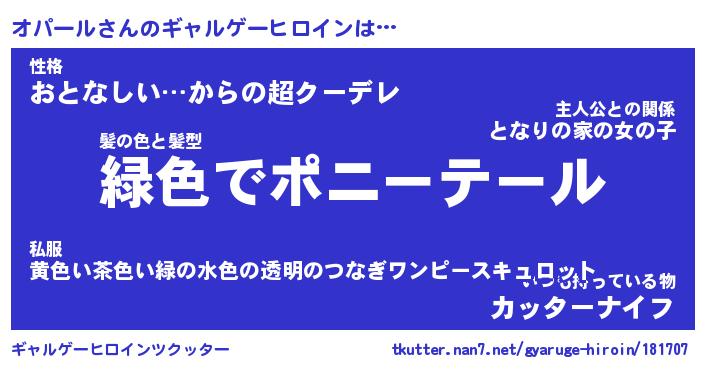 | ファンタジー風あだ名 | 『オパフェル』『エターナルオパールー』 |