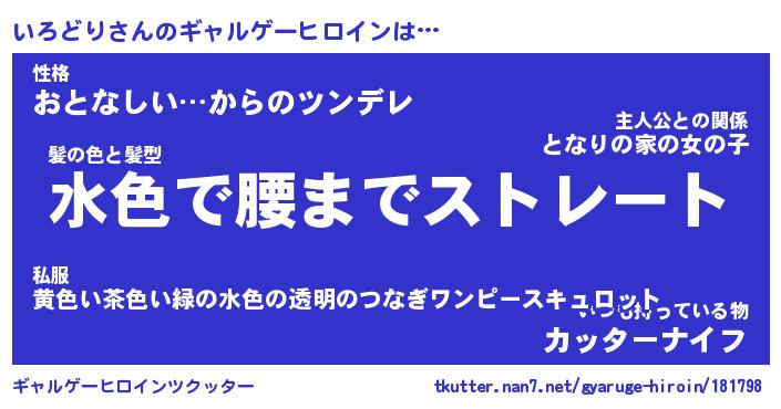 | 男性向けラノベタイトル風あだ名 | 『いろどりの憂鬱』 |
