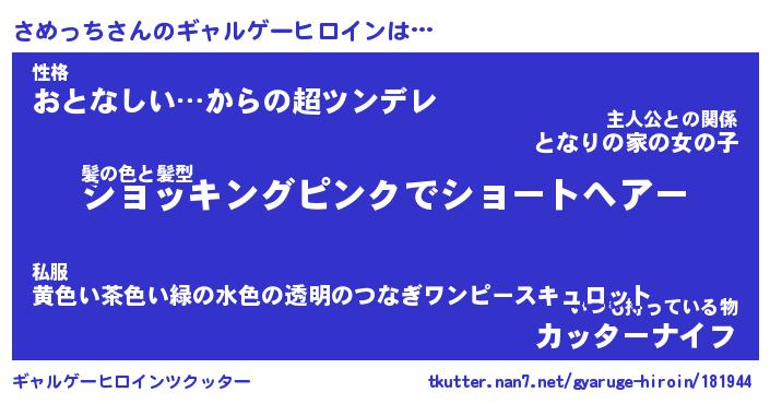 | 意味不明あだ名 | 『ペロリンさめっち』『永久保存さめっち』 |
