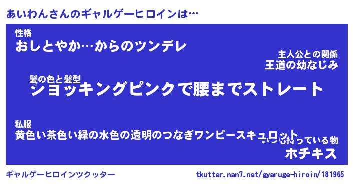 | 男性向けラノベタイトル風あだ名 | 『あいわんの憂鬱』 |