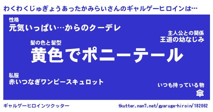 | ヘコむあだ名 | 『わくっふぃ~』『なまこ酢』 |
