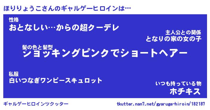 | 女子向けラノベタイトル風あだ名 | 『(仮)ほりりょうこのやんごとなき事情』 |