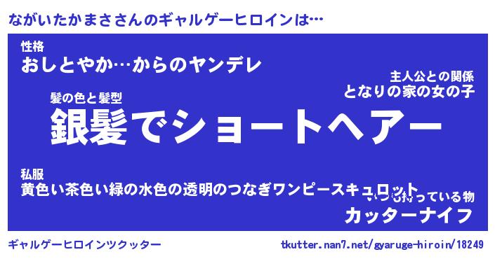 | 女子向けラノベタイトル風あだ名 | 『ながいたかまさ姫と円卓の騎士』 |
