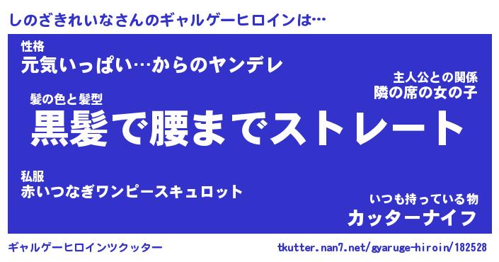 | 男性向けラノベタイトル風あだ名 | 『しのざきれいなの憂鬱』 |