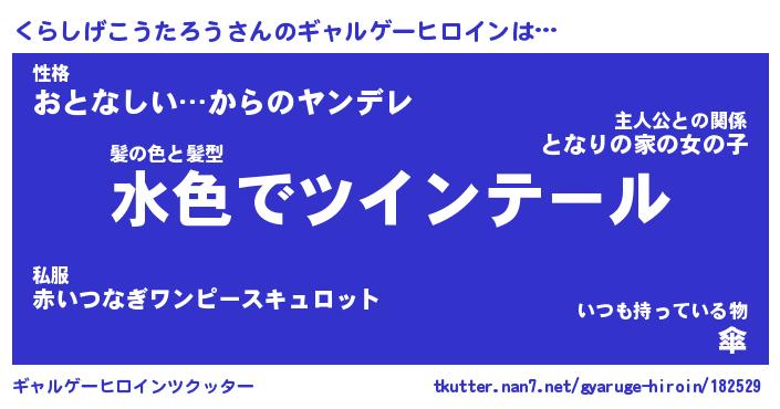 | 男性向けラノベタイトル風あだ名 | 『くらしげこうたろうの憂鬱』 |