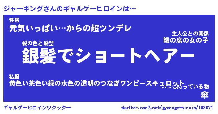 | 女子向けラノベタイトル風あだ名 | 『ジャーキング姫と円卓の騎士』 |