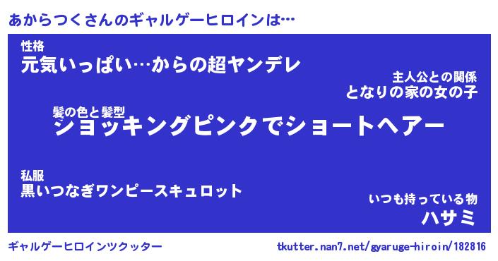 | 女子向けラノベタイトル風あだ名 | 『(仮)あからつくのやんごとなき事情』 |